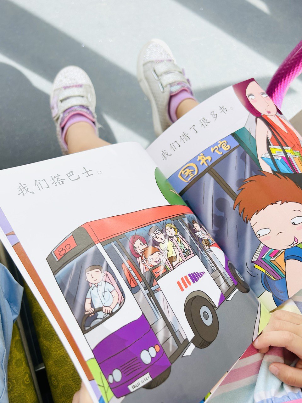 There was a period when my then 3 year old daughter was interested in different modes of transportation, we read the book 交通工具 On the Road several times while riding the train and bus. Nothing like experiencing the real thing while reading about it!