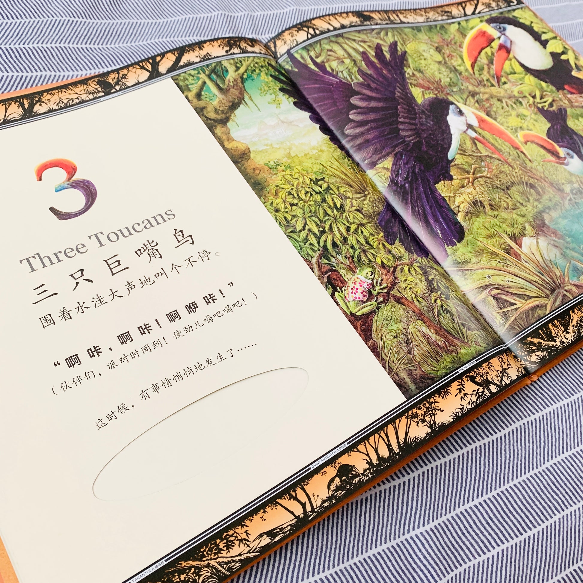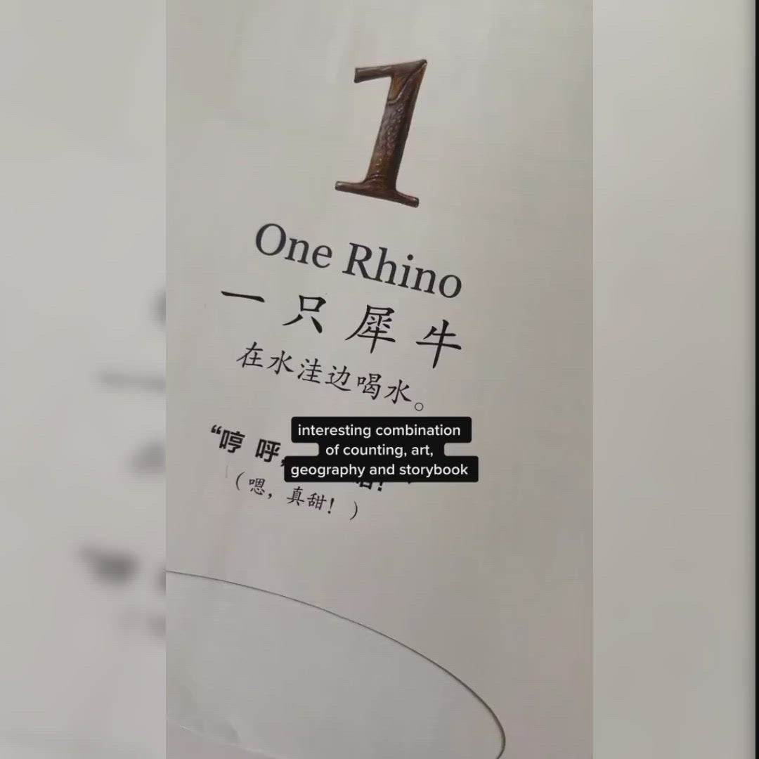 Love the illustrations and that it has bilingual texts. I read it regularly with my 2 yo and 4yo. The 2 yo is learning to recognise and point at the numbers while the 4yo is learning the animal names in Chinese.