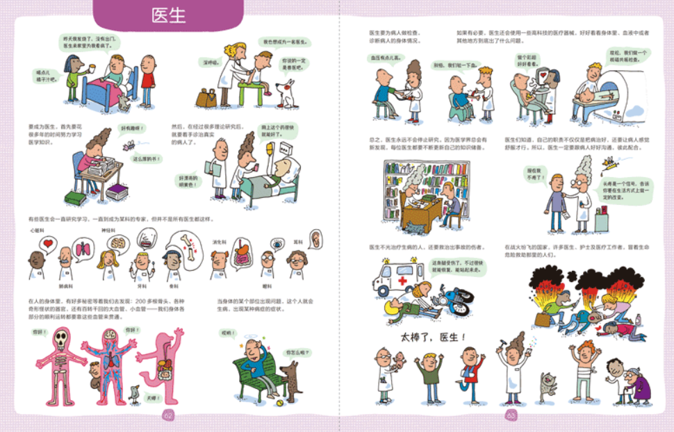 - Lots of speech bubbles, making the content relatable - of curious children asking questions about the occupations, or words spoken by people on the job