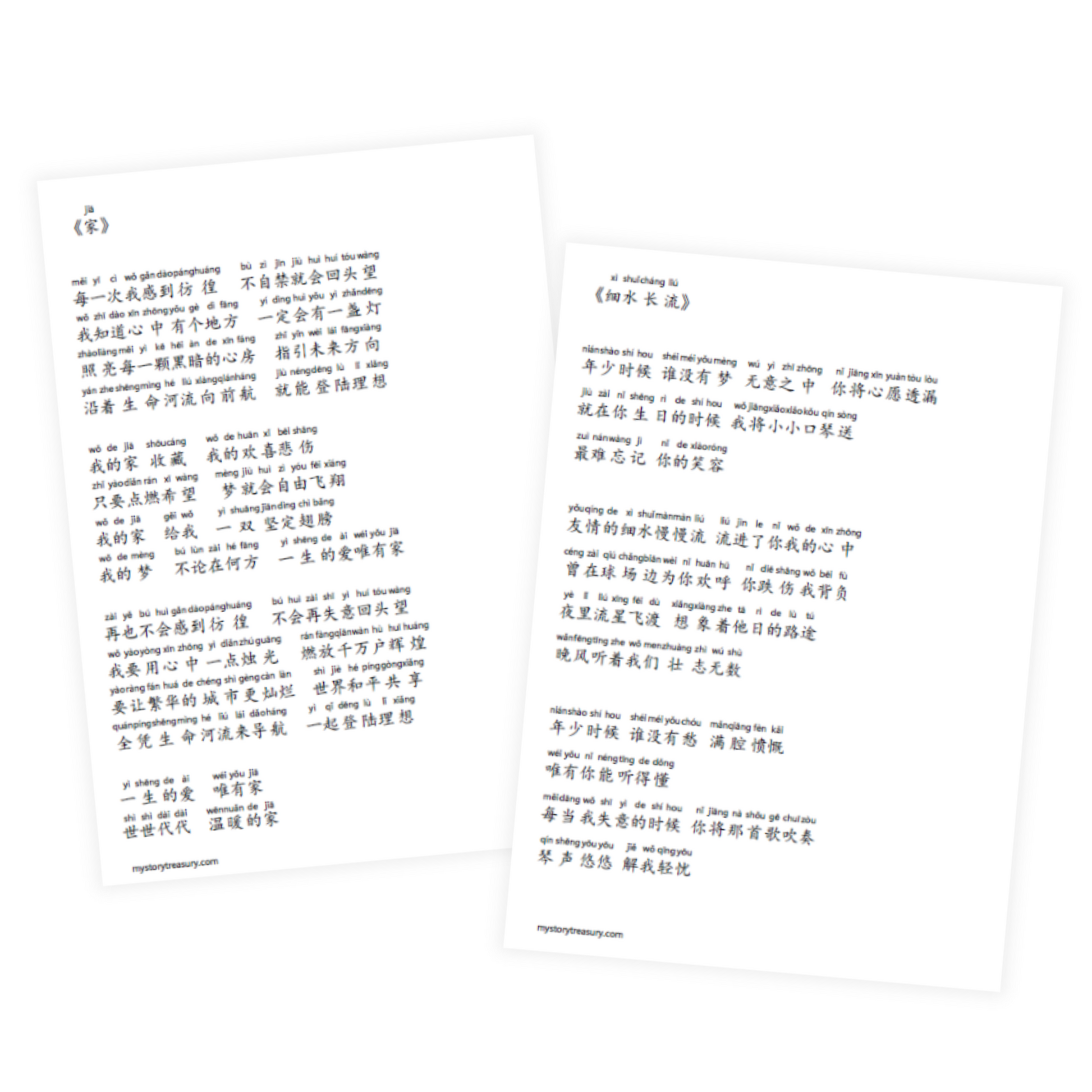 Digital Download - Printable Lyrics - Mandarin Songs about Singapore