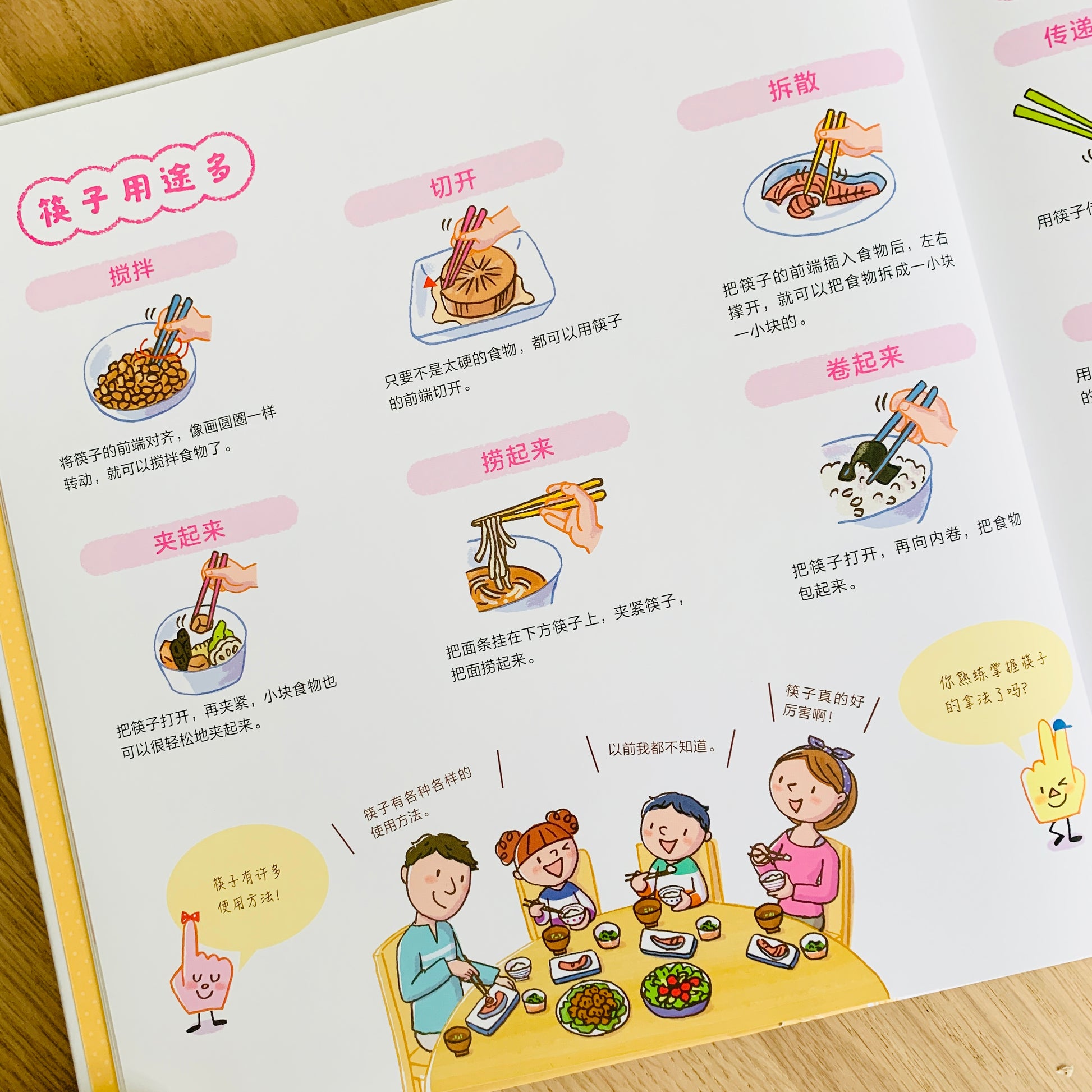 Recently, I've been using this book to teach my older boys skills like how to use chopsticks, how to use and pass a pair of scissors to others, tie shoelaces, cut fruit, peel vegetables and more - and the visual guides have been really helpful.