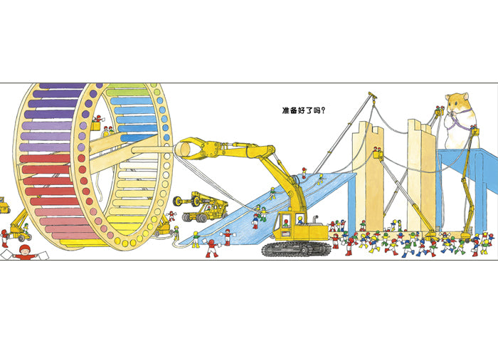 The little workers are entrusted to help little hamster make a treadmill. Forklifts, cranes, bulldozers, can the little people successfully complete their tasks?